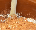 発酵させるために米麹を入れ、樽の一定温度を保ちます。